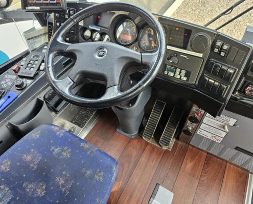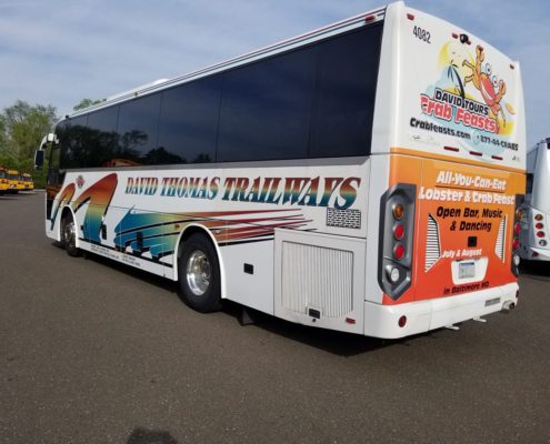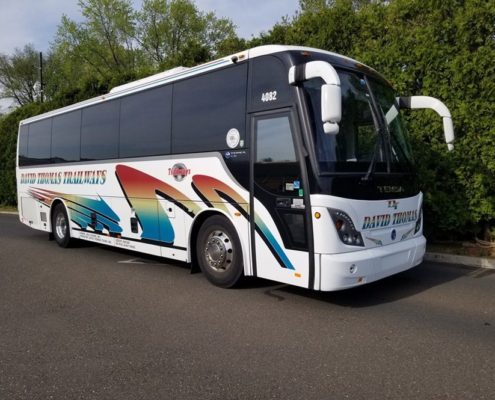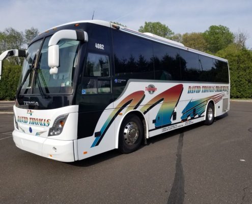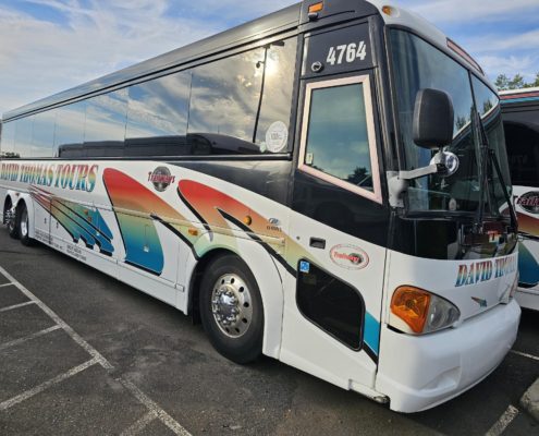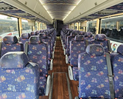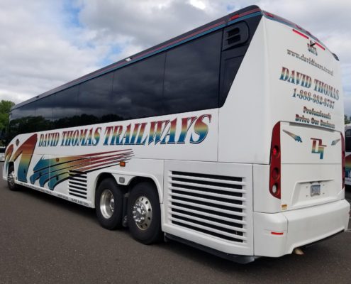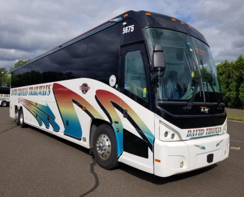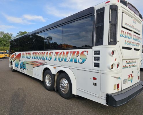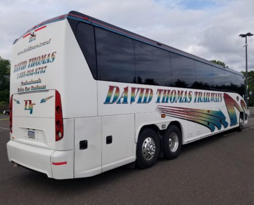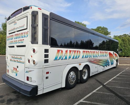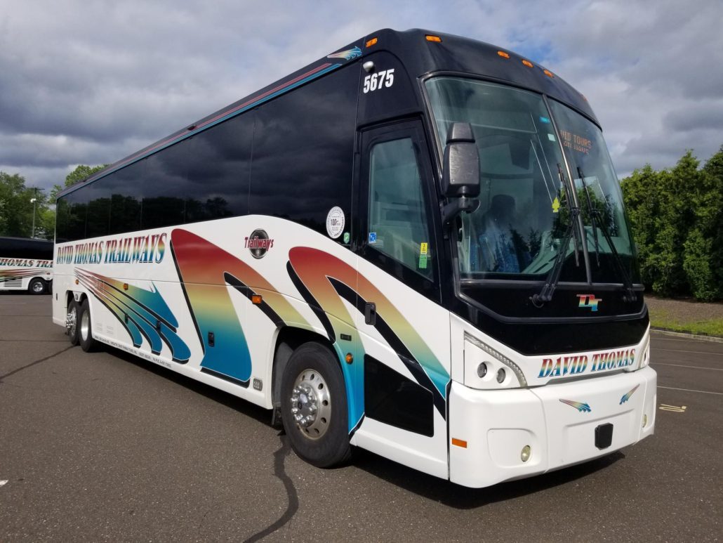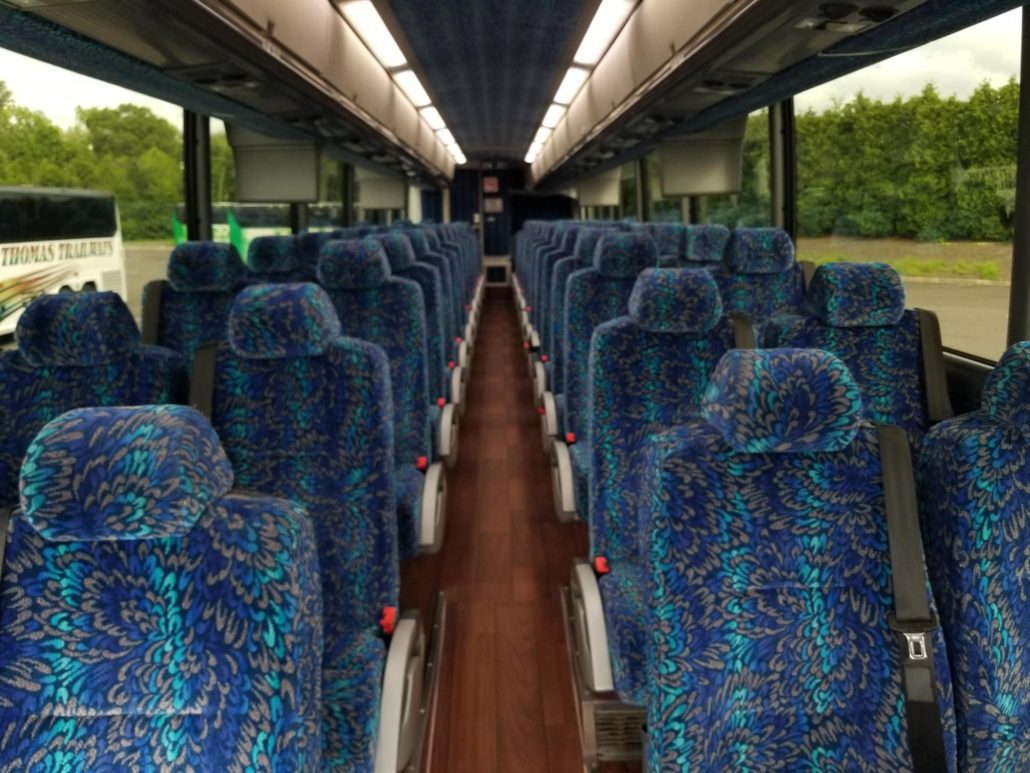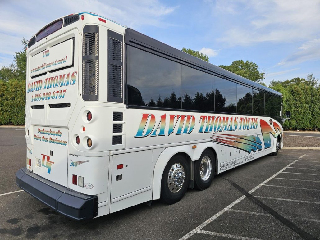 56 Passengers, Lavatory Equipped, Cummins Engine, Allison Transmission, Destination Sign, Wood Grain Floor, Seat Belts, Saucon Cameras, DVD Player, 110v Outlets